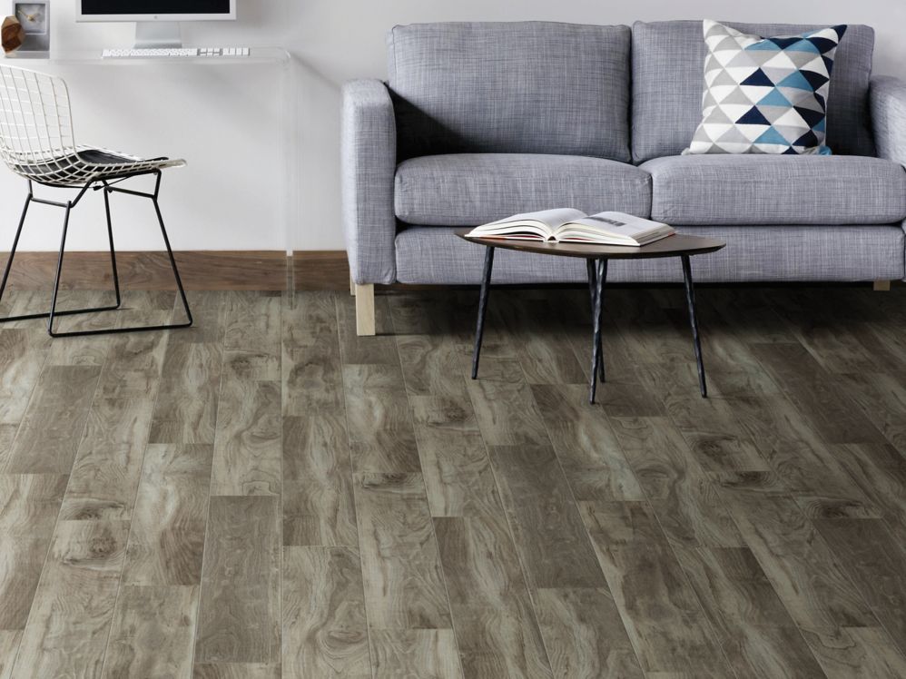 Our flagship waterproof LVP features a diverse palette ranging from muted to deep, character-driven hues in walnut and limed white-oak visuals. Uptown Now WPC Plus features accent bevels for plank definition and attached pad for added comfort and sound reduction.